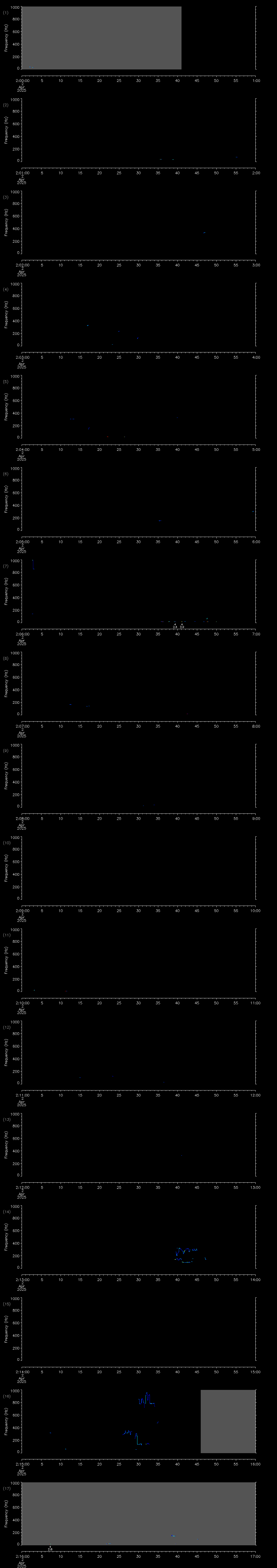 | Date/time | Sei whale | Fin whale | Right whale | Humpback whale | Other | Duration |