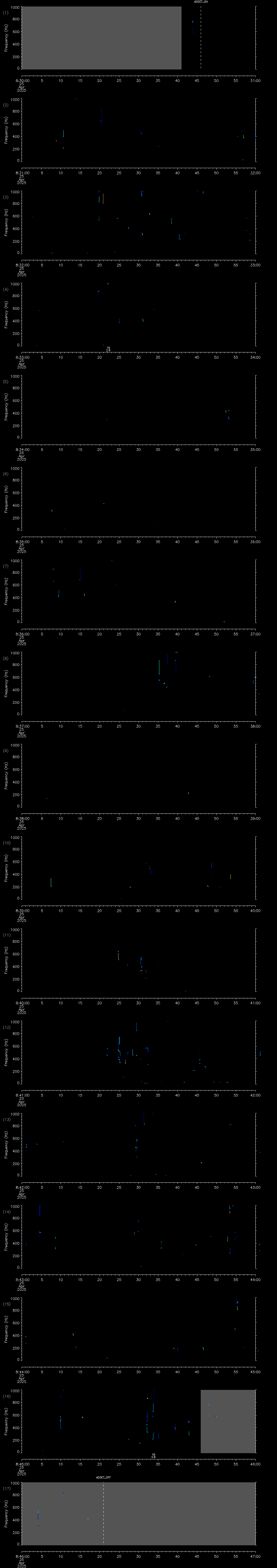 - MUTEON: the hydrophone is muted to assess system noise and to provide a time mark in the audio recording