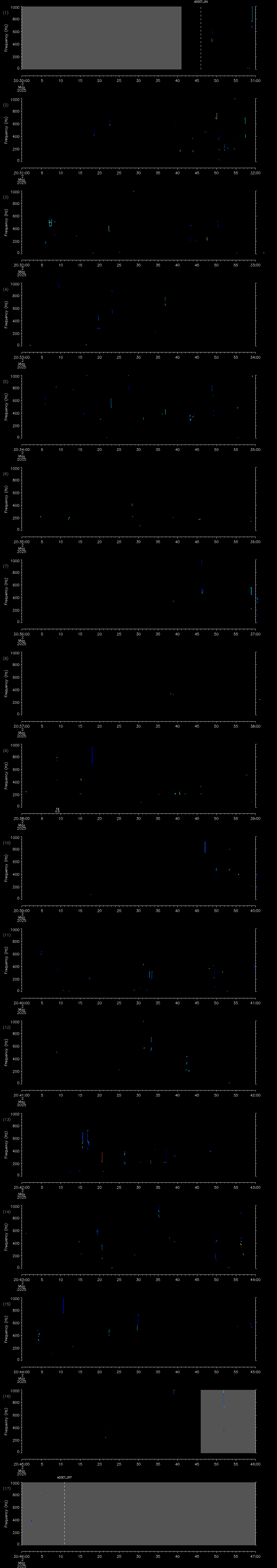 - MUTEON: the hydrophone is muted to assess system noise and to provide a time mark in the audio recording