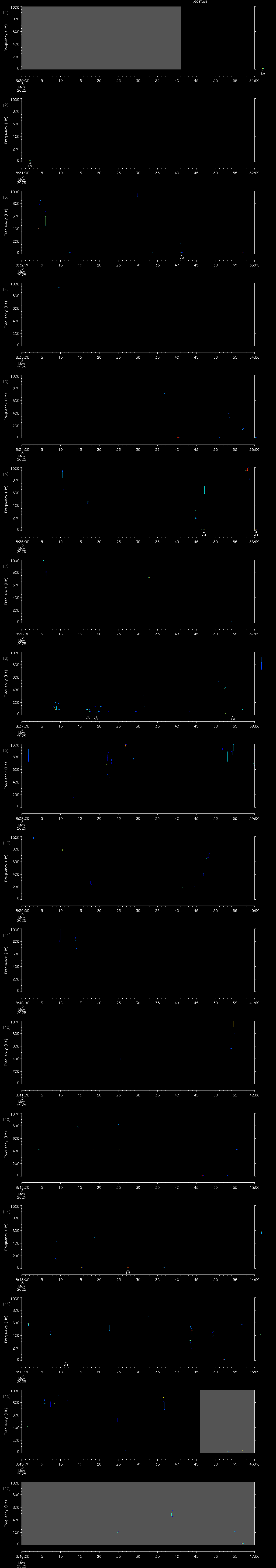 - MUTEON: the hydrophone is muted to assess system noise and to provide a time mark in the audio recording
