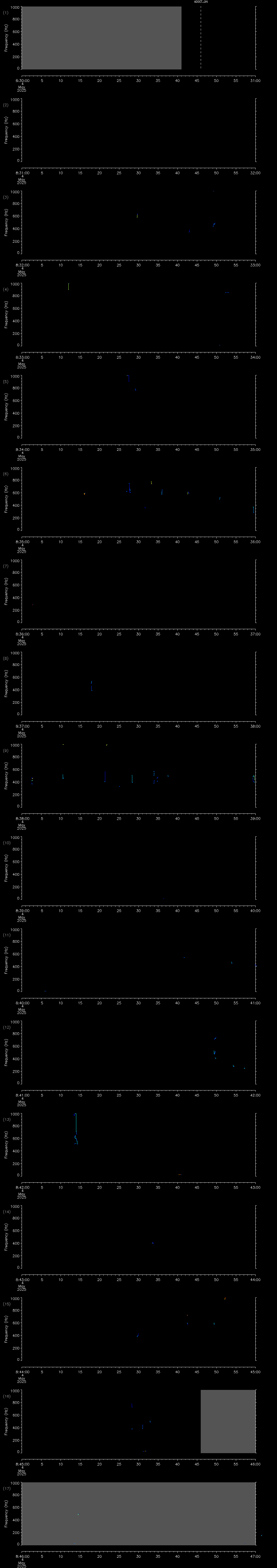 - MUTEON: the hydrophone is muted to assess system noise and to provide a time mark in the audio recording