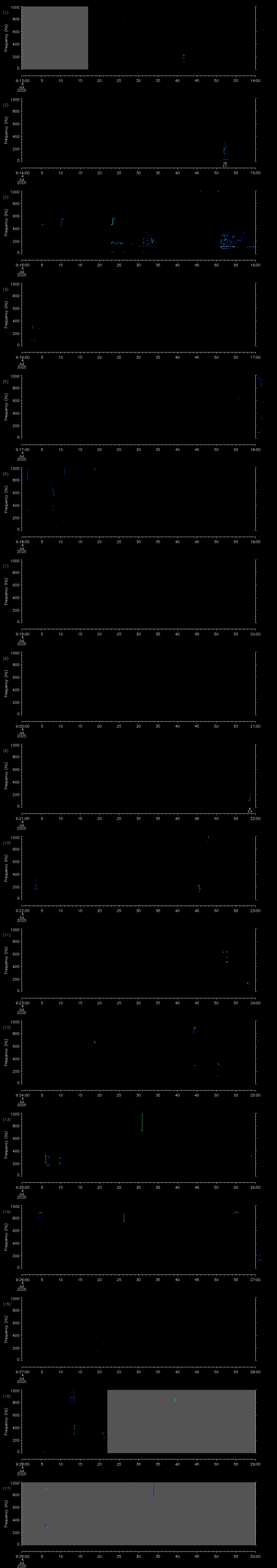 | Date/time | Sei whale | Fin whale | Right whale | Humpback whale | Other | Duration |