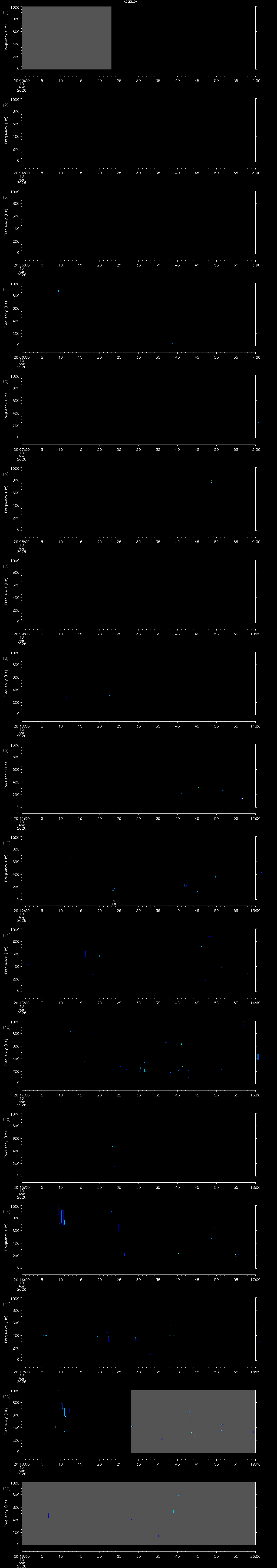 | Date/time | Sei whale | Fin whale | Right whale | Humpback whale | Other | Duration |