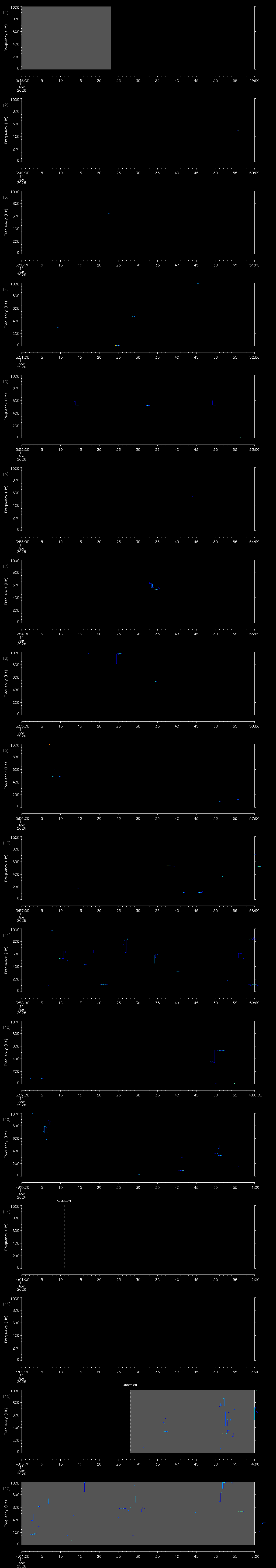 - MUTEON: the hydrophone is muted to assess system noise and to provide a time mark in the audio recording